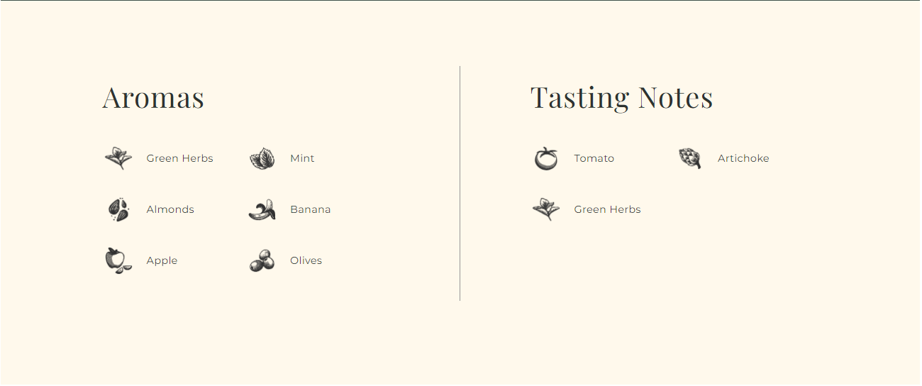 La intensidad se correlaciona con la cantidad de amargor y/o picor que se experimenta al consumir un aceite de oliva virgen extra. Un aceite de oliva con poco amargor que crea poca o ninguna sensación en la parte posterior de la garganta se considera suave. Un aceite de oliva muy amargo que causa una ligera sensación de ardor o picante en la boca y la garganta es robusto. Calificamos la intensidad entre 5 valores: Suave, Media, Robusto Medio, Robusto y Extremo.