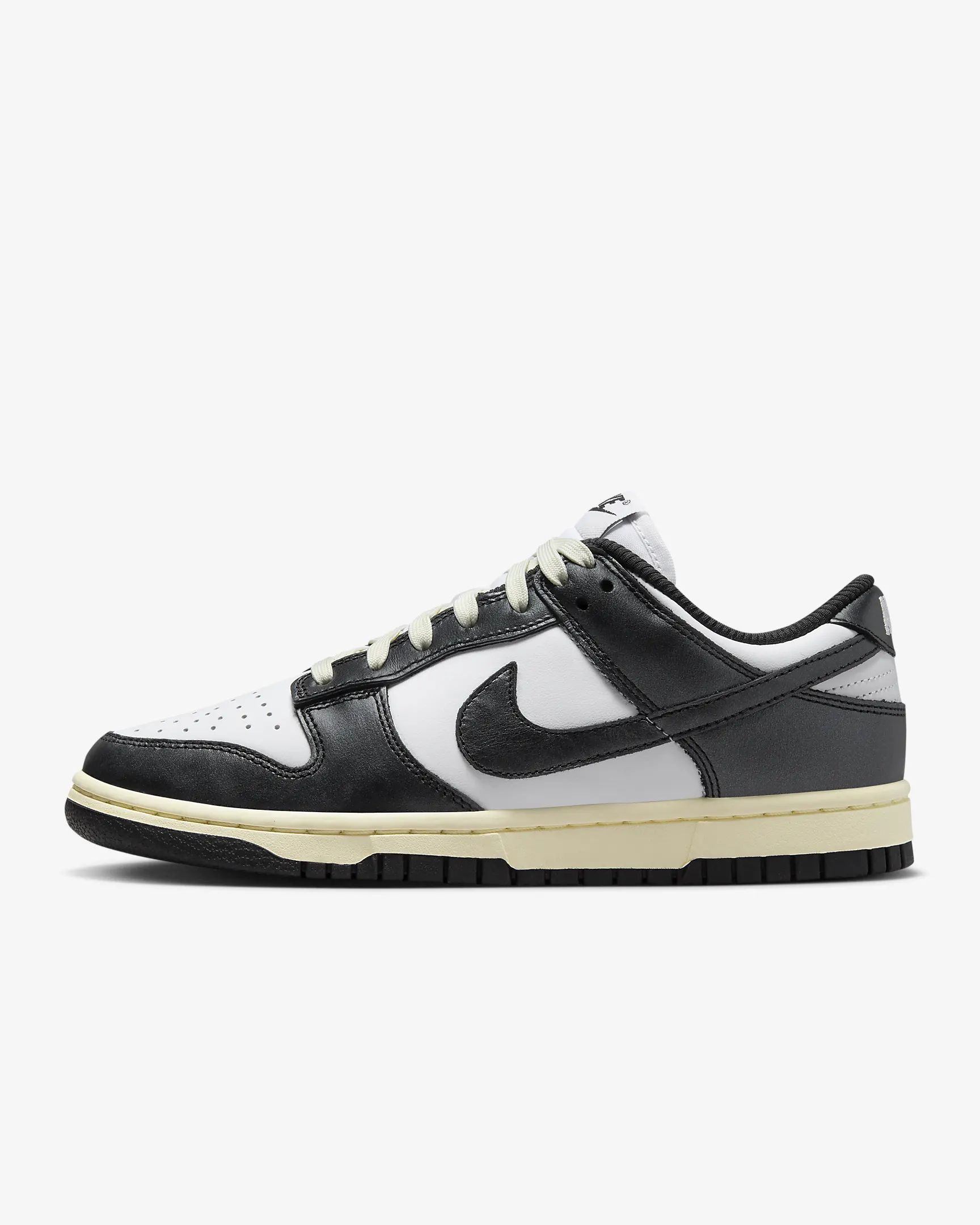 - La parte superior de piel envejece con una suavidad increíble y presenta una confección duradera que recuerda a las zapatillas de baloncesto de los años 80.