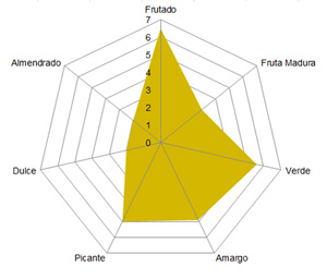Su aroma recuerda a hierba fresca, sabor a verde hoja de olivo con toques de manzana y alcachofa. Muy fresco a la vez que delicado con elegante amargor y picor.