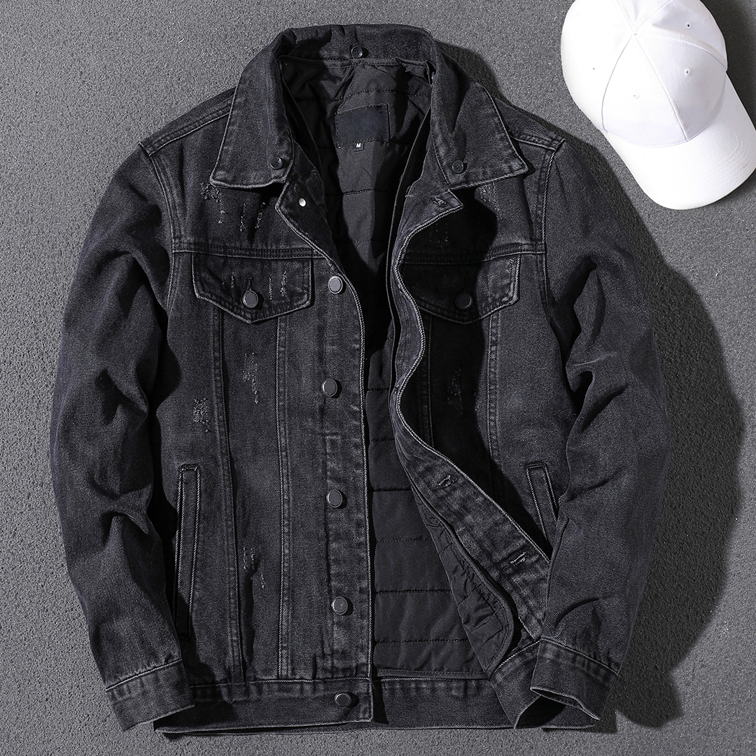 Handsome autumn and winter new style detachable hooded denim jacket men's trendy brand Korean version velvet thickened motorcycle jacket men's trendy