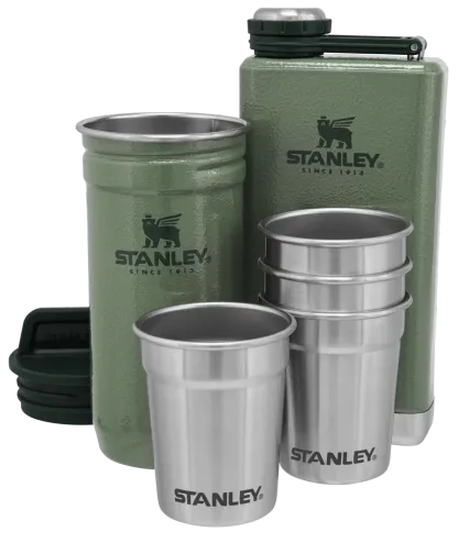 Movies in the park. Long-haul bike rides. Music festivals. Mountain conquering. There are so many places you can take this kit. The stainless steel shot glasses nest neatly inside the carrying case and won��t break, even if you drop them. The slim 8 oz. flask holds enough to fill all four shots, and still slides easily into a small bag or backpack.