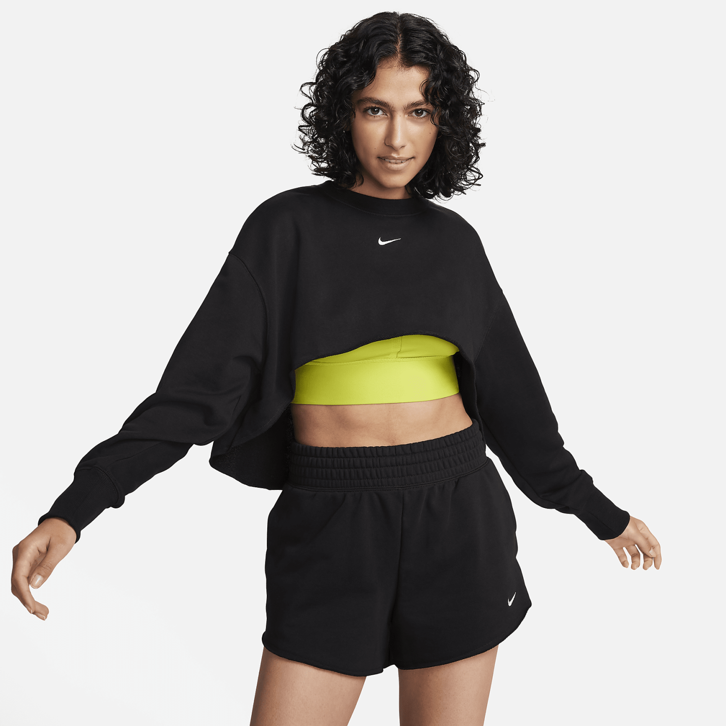 Go from the streets to the studio in this spacious top. The raw hem lands right under the busta??making sweats just a little edgier.